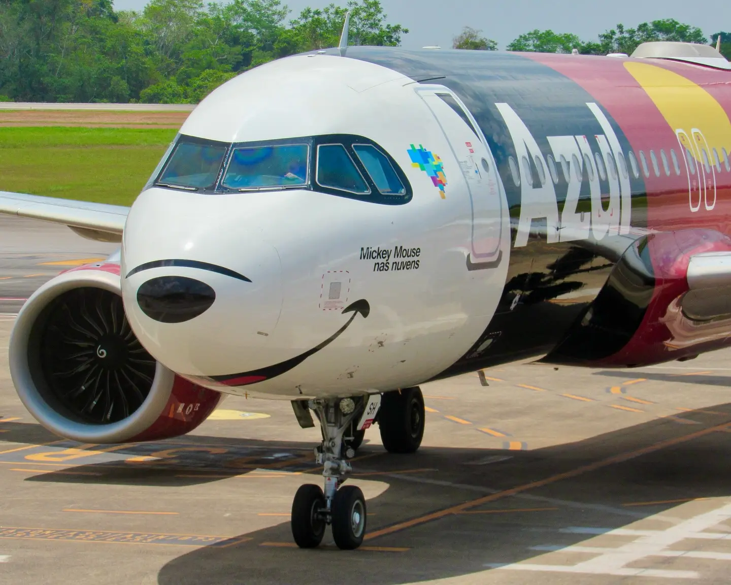 Airbus A320Neo da Azul Linhas Aéreas com pintura temática do Mickey Mouse pousa no Aeroporto Internacional de Rio Branco, Acre/Foto: Daniel Luz/@danielfsl