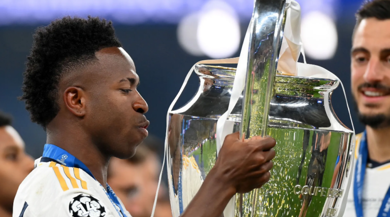 Vinicius Júnior com a taça de campeão da Champions League 2023/2024/Foto: Justin Setterfield/Getty Images