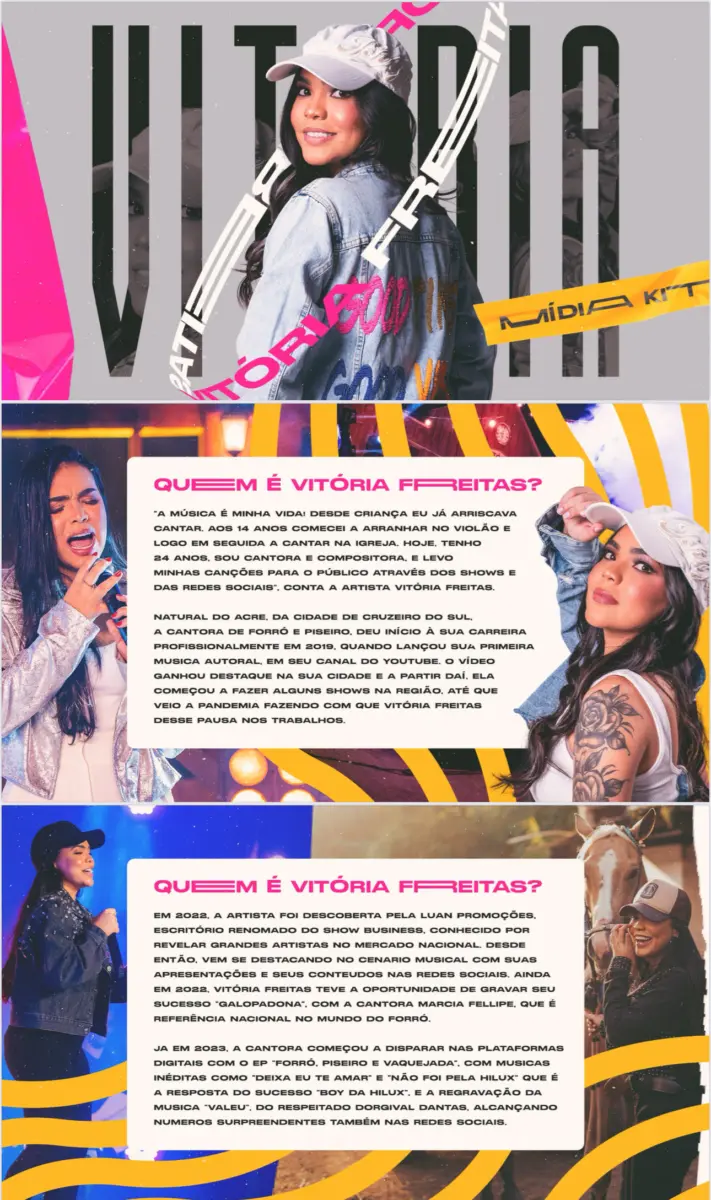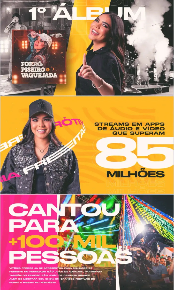 Aos 24 anos, a cantora acreana Vitória Freitas, natural de Cruzeiro do Sul, vem conquistando o público com sua voz marcante e seu talento no piseiro sertanejo. Com hits como “Não Foi Pela Hilux” e “Galopadona”, ela hoje se destaca nas principais plataformas digitais. Sua música “Erra na Minha Cama” viralizou no Spotify e foi sucesso em seis capitais brasileiras, incluindo Rio Branco, Porto Velho e Fortaleza.