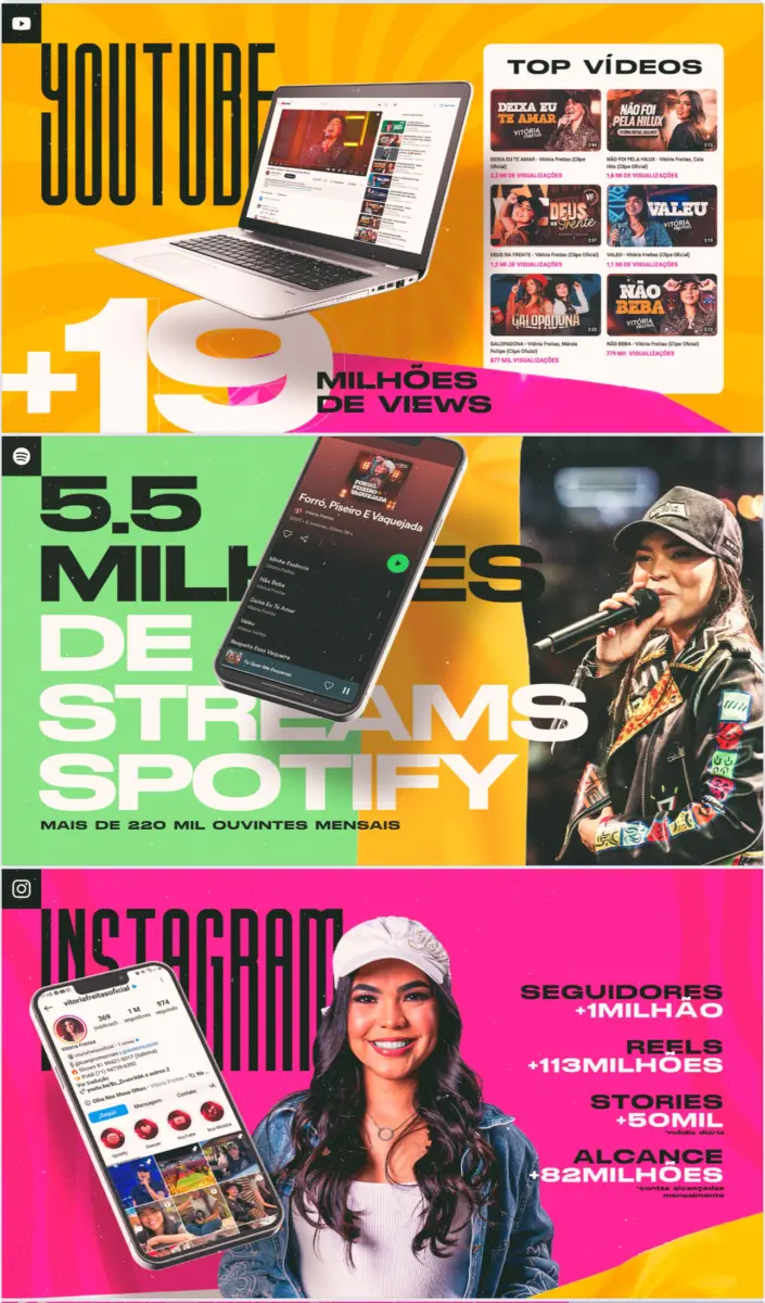 Atualmente, Vitória faz parte do casting da Luan Promoções, empresa que gerencia carreiras de grandes nomes como Wesley Safadão e Márcia Fellipe. Com mais de 85 milhões de streams em áudio e vídeo, a cantora acreana continua conquistando corações por todo o Brasil e levando o nome do Acre aos palcos nacionais.