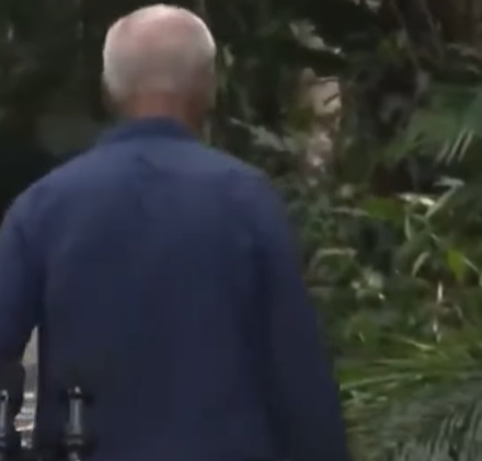 Joe Biden caminha em direção à mata no MUSA; momento descontraído gerou memes nas redes sociais/Foto: Reprodução