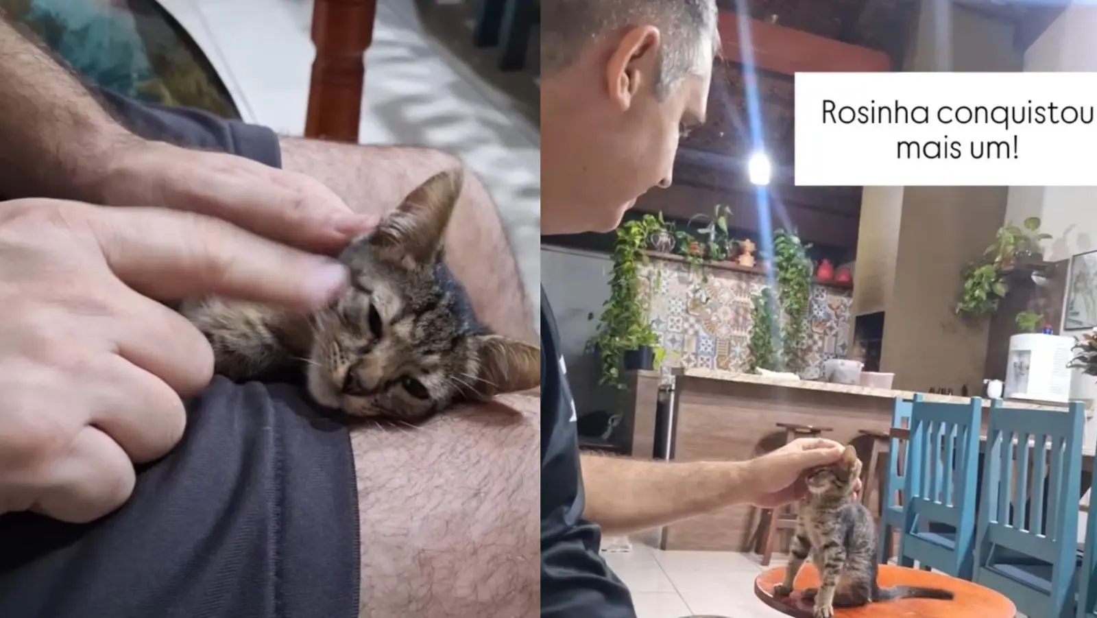 Neste sábado (30), a esposa de Marcus publicou um vídeo nas redes sociais em que ele aparece brincando e acariciando um filhote de gato, provavelmente de estimação da família.
