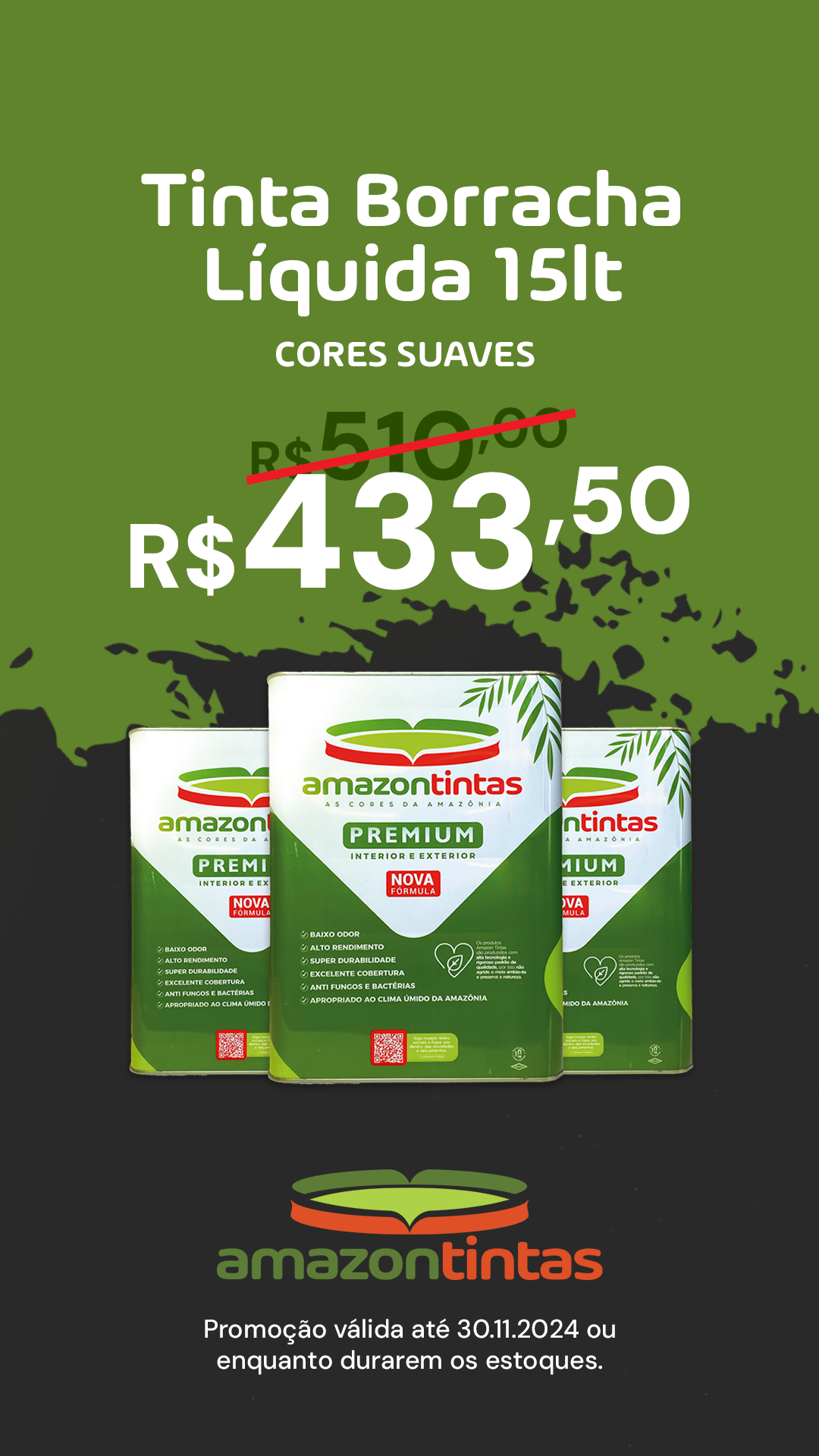 Além das ofertas, a Amazon Tintas também é reconhecida por suas inovações adaptadas às necessidades da Região Norte. Um exemplo é a Tinta Borracha Líquida, uma solução impermeabilizante e hidrorrepelente que protege e renova as paredes, ideal para áreas externas.