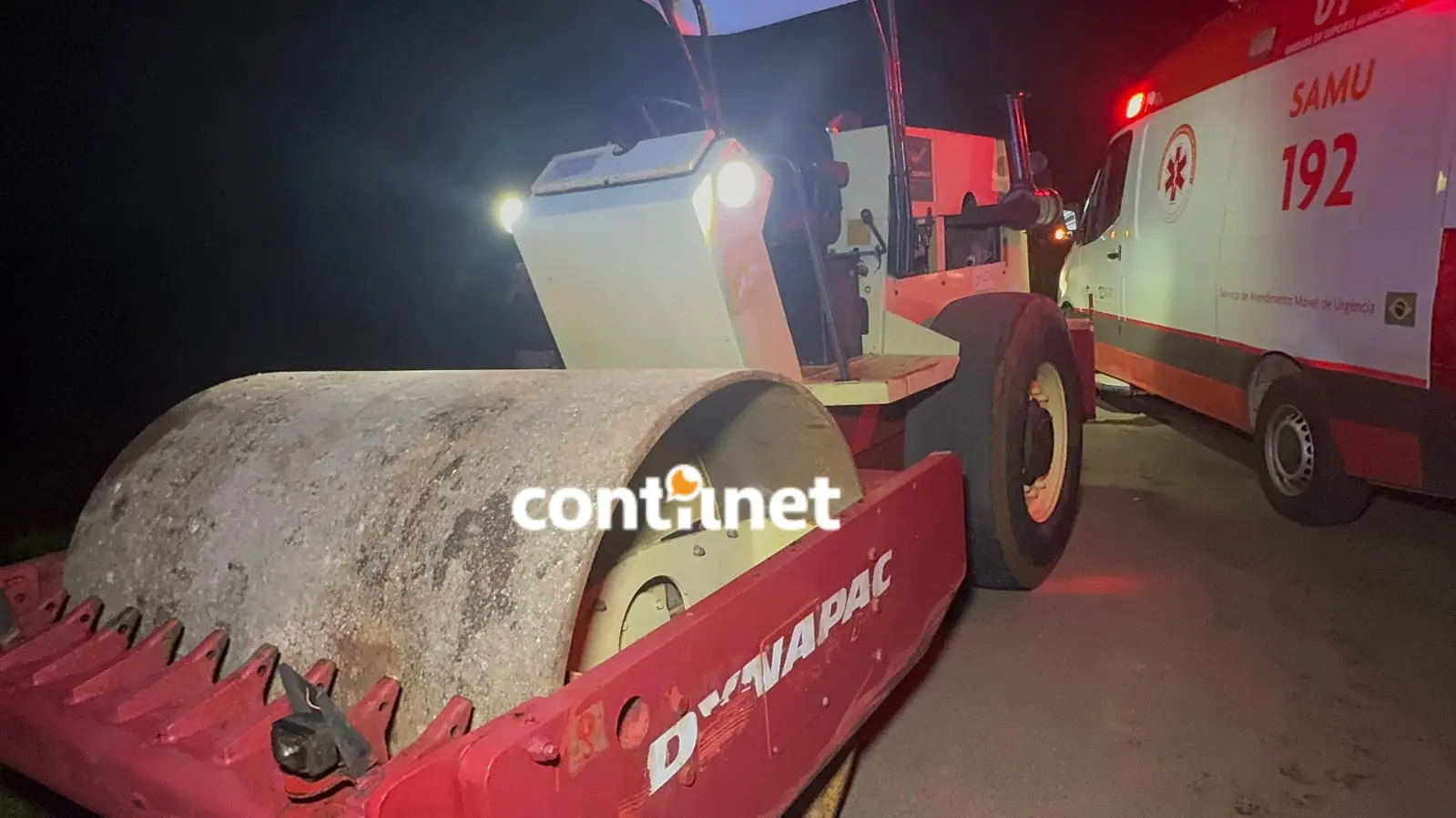 Trator rolo compressor envolvido na colisão; veículo trafegava em baixa velocidade e sem sinalização na BR-364/Foto: ContilNet
