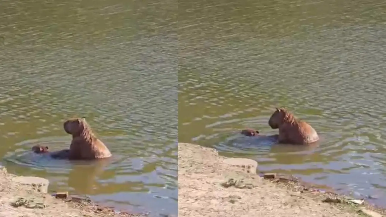 Duas capivaras foram flagradas acasalando nesta semana no lago da Universidade Federal do Acre (Ufac), no campus Rio Branco.