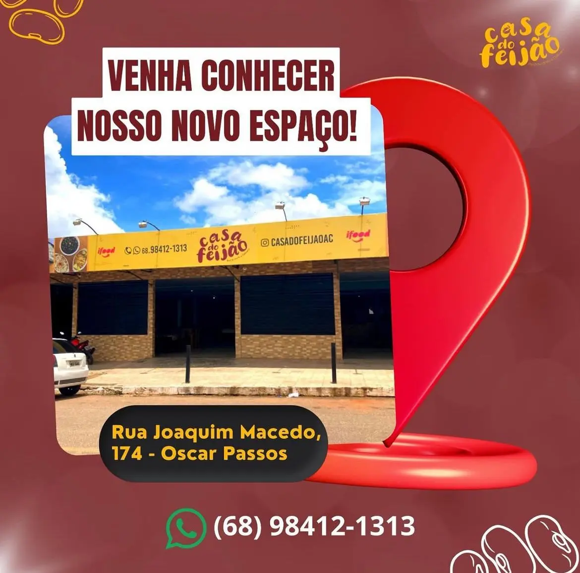 A história de empreendedorismo da Jenasla Pinto começou em 2021, durante a pandemia, quando deixou seu antigo emprego como servidora pública e decidiu empreender na área da culinária. “Eu queria muito empreender, e todos me diziam para fazer uma feijoada, porque a minha era excelente. Comecei, então, com delivery durante a semana e, depois, saí de casa, aluguei um imóvel apenas para trabalhar com o delivery”, comenta. Assim nasceu a Casa do Feijão (@casadofeijaoac), empreendimento que conquistou o paladar dos acreanos.