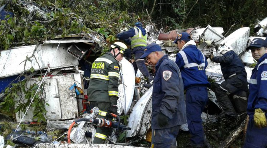 Avião com equipe da Chapecoense e jornalistas caiu em novembro de 2016. Seis pessoas sobreviveram e 71 morreram/Foto: Divulgação/ Polícia de Antioquia