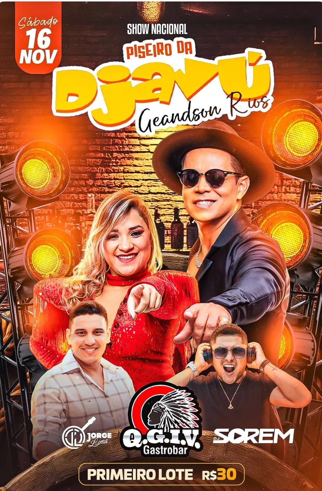 Já é sábado (16) o show nacional Piseiro da Djavú Geandson Rios no QGIV Gastrobar com muito tecnobrega.