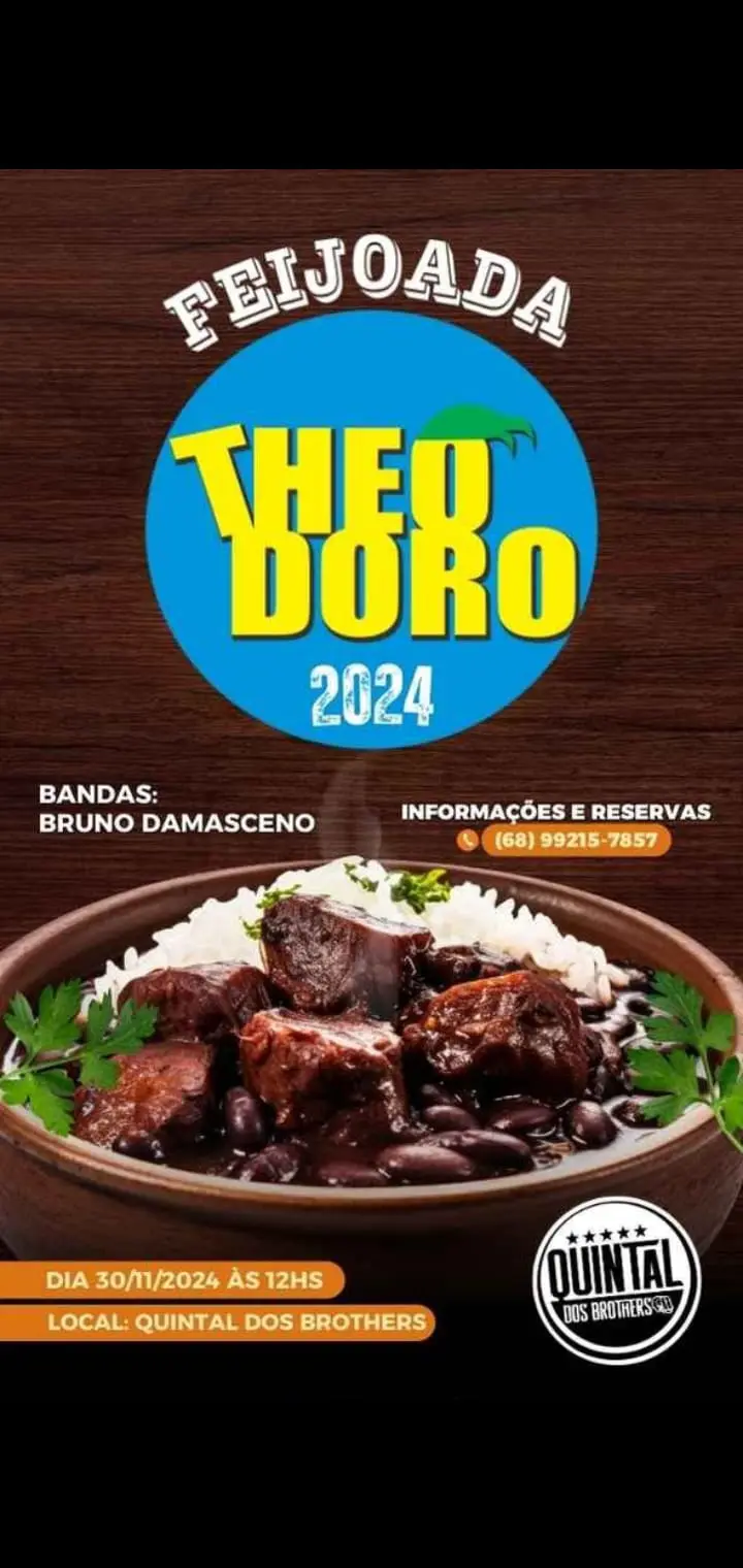 No dia 30 de novembro acontece a tradicional Feijoada do Theodoro com muito samba por conta de Bruno Damasceno no Quintal dos Brothers.