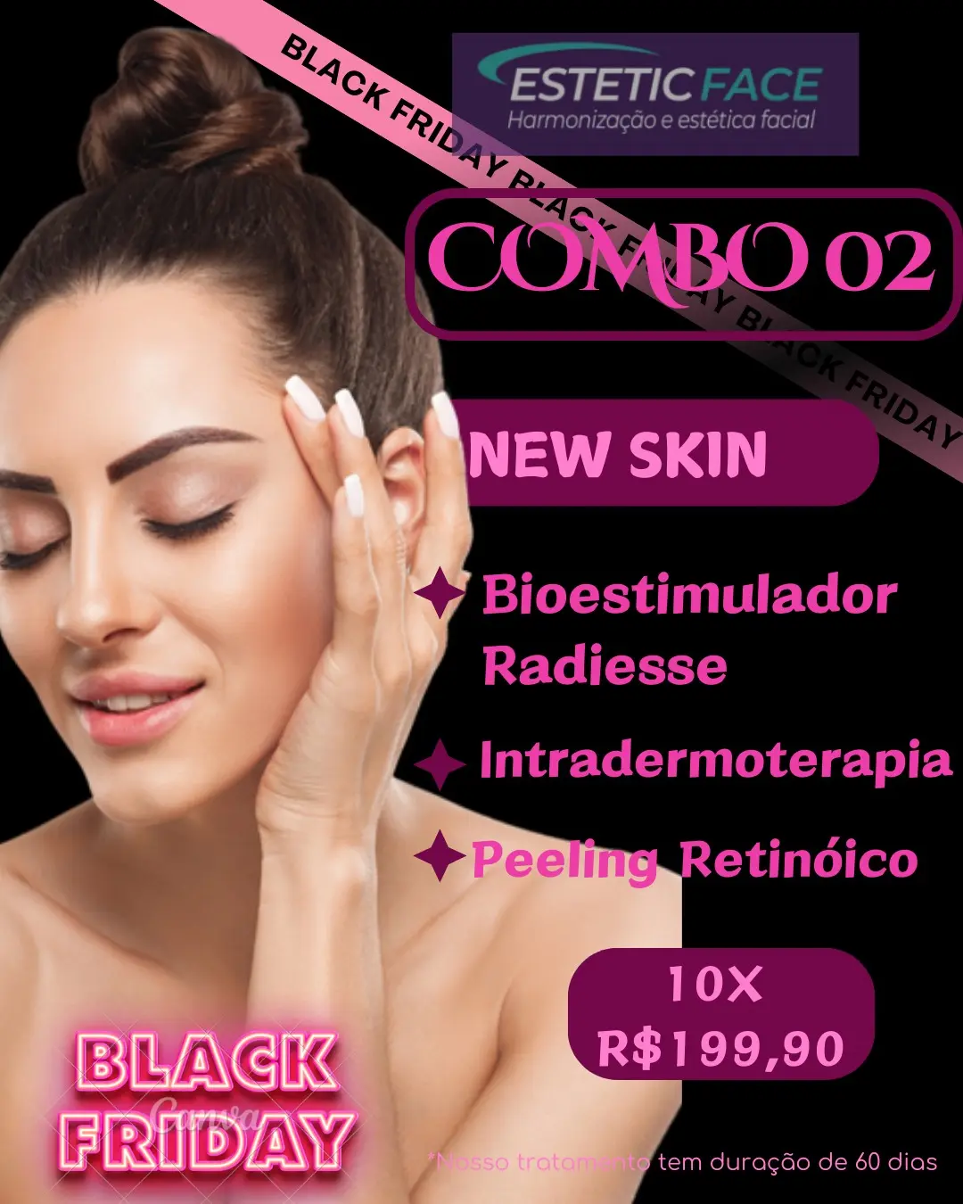Quer ficar mais linda? Não perca esta oportunidade na Estetic Face, confira os combos da Black Friday.
