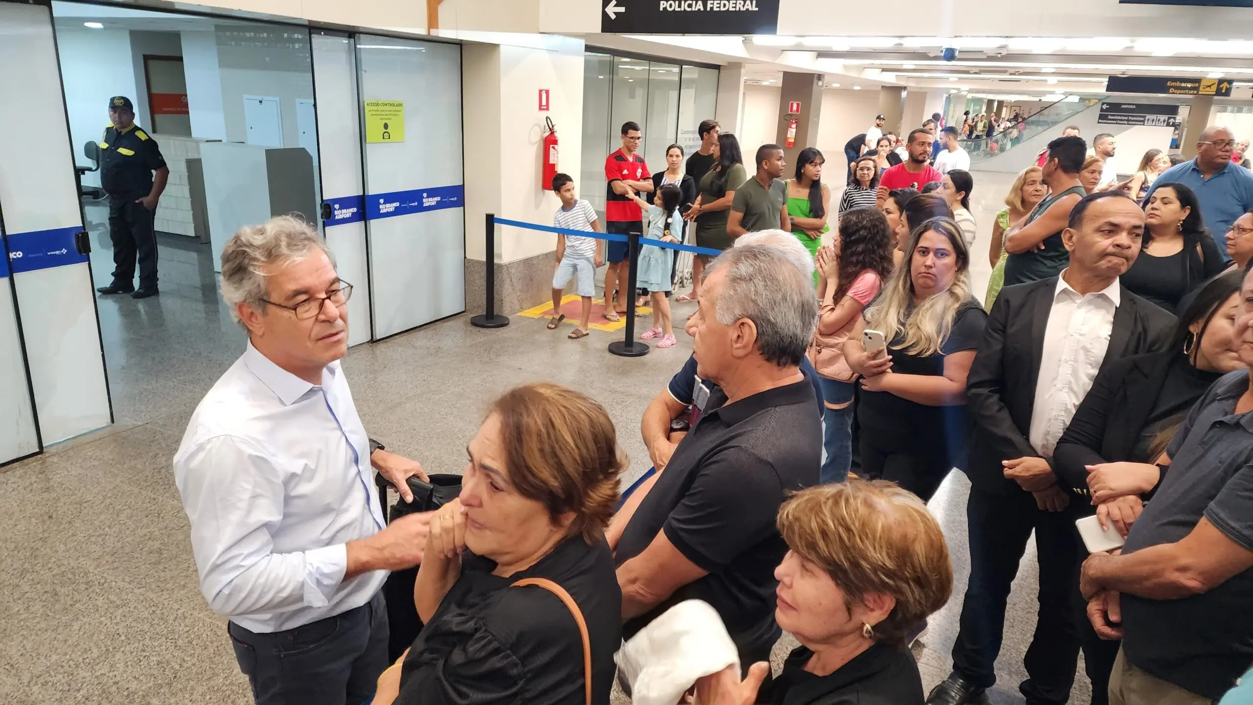 Família, amigos e correligionários se reúnem no Aeroporto Internacional de Rio Branco para receber o corpo do ex-governador Flaviano Melo, marcando o início das homenagens ao líder político/Foto: ContilNet