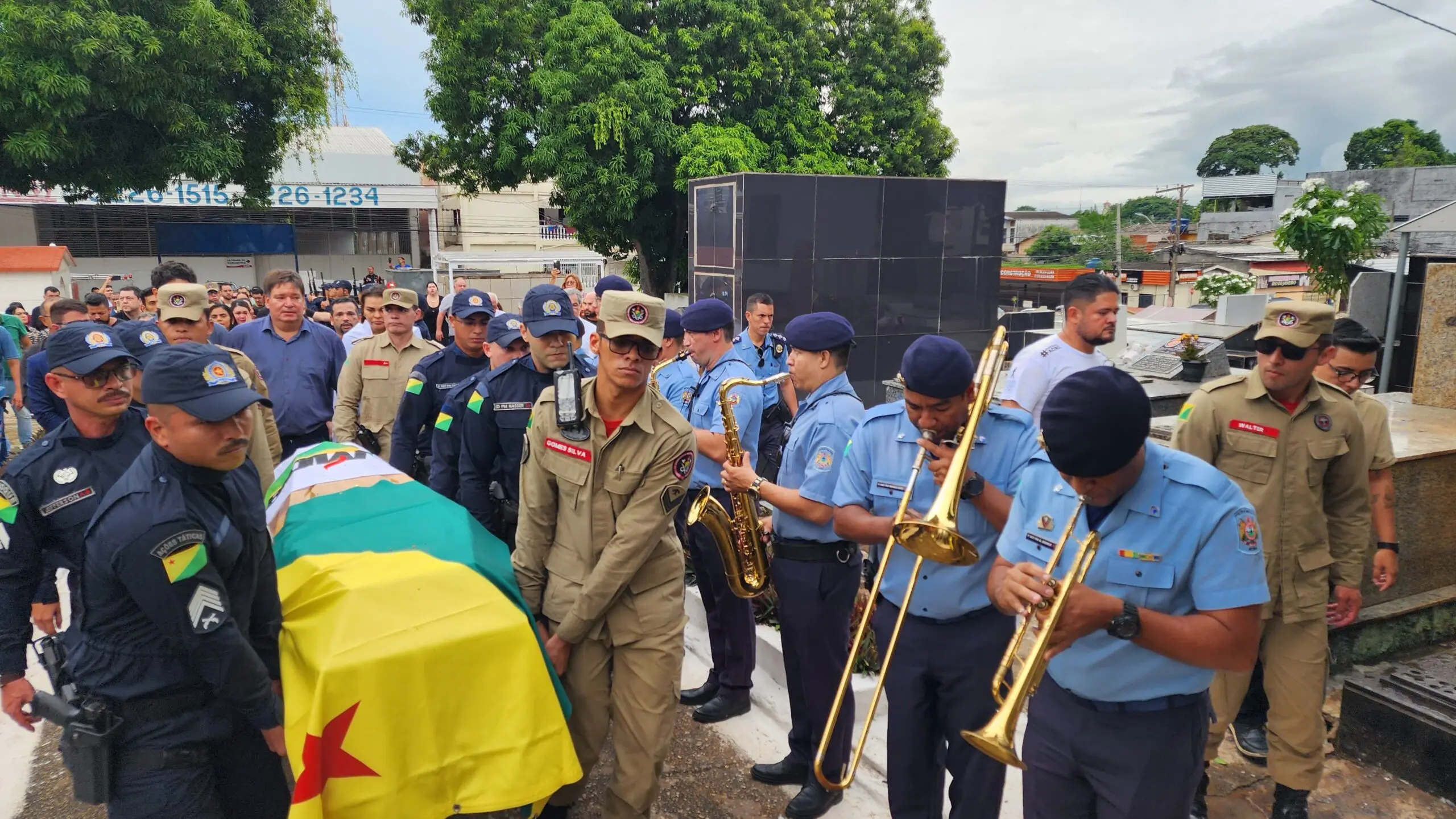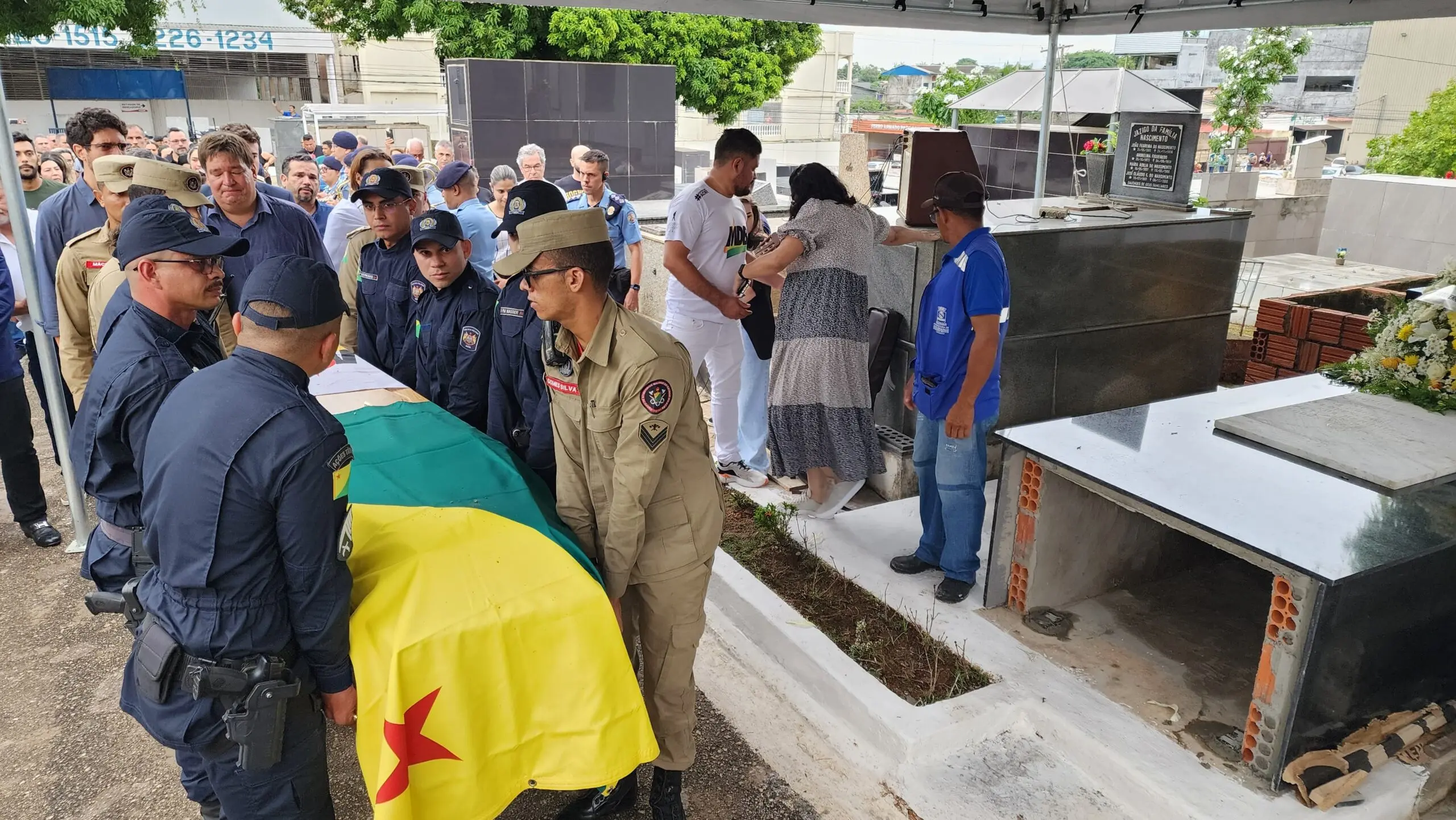 O corpo do ex-governador Flaviano Melo foi recebido com salva de tiros ao chegar ao Cemitério São João Batista, na tarde deste sábado (23). A cerimônia, organizada pelo Governo do Estado, marcou a despedida oficial do ex-deputado.