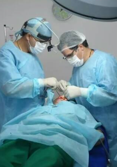 O dentista Pancho Roche durante a realização de um transplante ósseo, procedimento pioneiro em Rio Branco, realizado desde 2008/Foto cedida