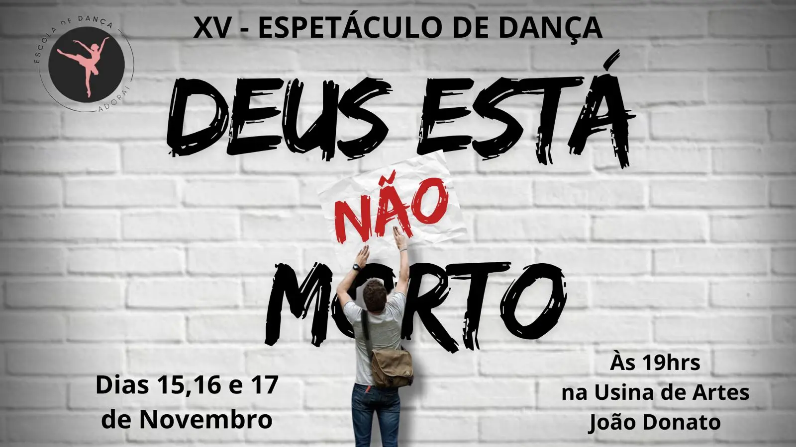 “Boa noite, é com grande honra e por amor ao nosso Deus, que a Escola de Dança Adorai apresenta seu XV espetáculo de dança ‘Deus não está Morto’, que contará em forma de danças e interpretação, uma linda história que vai reavivar a sua fé”, descreve o grupo de dança.
