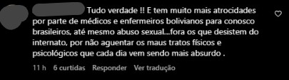 Outro comentário diz que “mais atrocidades” ocorrem com os brasileiros que vão à Bolívia estudar, também citando abusos sexuais.