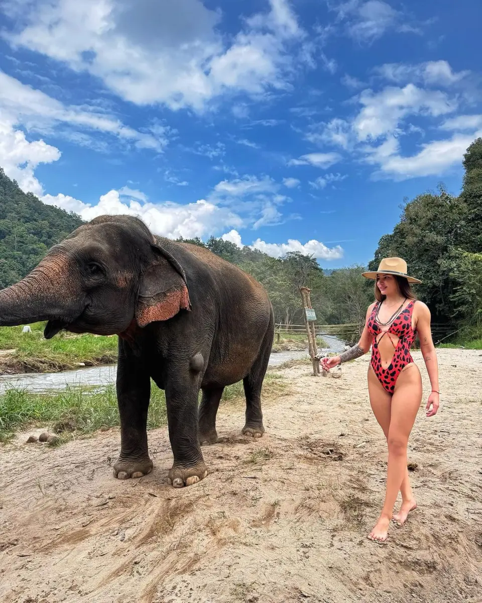 Samara incluiu em seu roteiro uma visita ao santuário de elefantes resgatados/Foto cedida