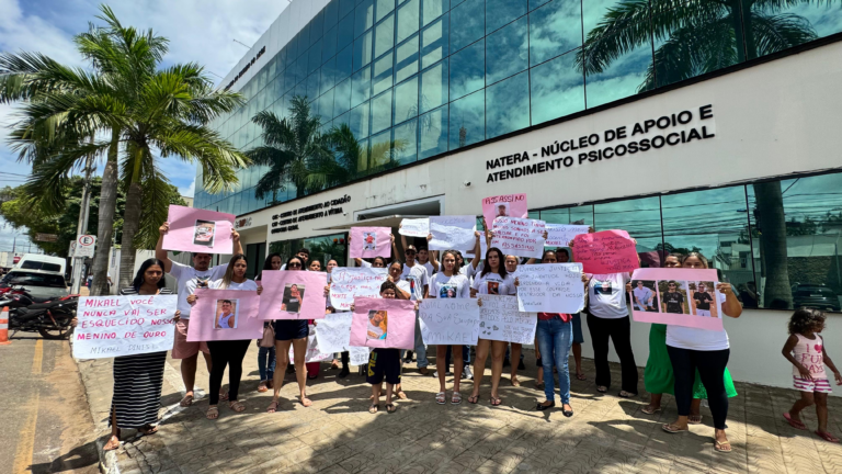 Familiares de Mikael Diniz Moura, 20 anos, assassinado com uma facada no peito na Avenida Amadeo Barbosa, em Rio Branco, realizaram um protesto nesta segunda-feira (25), em frente à sede do Ministério Público do Estado do Acre (MPAC), no centro de Rio Branco.