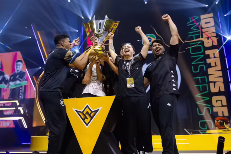 O Fluxo é campeão mundial de Free Fire depois da conquista da FFWS Global Finals 2024 decidida no Rio de Janeiro neste domingo, dia 24. O time de Nobru conquistou o título na sexta e última Queda das finais na Arena Carioca 1, com três pontos de vantagem da RRQ Kazu, depois de estar em sétimo lugar na penúltima disputa da tarde. Nas seis quedas, o Fluxo conseguiu três Booyahs! e 36 abates.