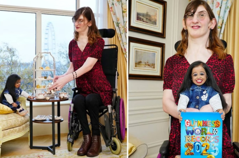 Rumeysa Gelgi mede 2,15 metros e Jyoti Amge 62,8 centímetros/Foto: Reprodução