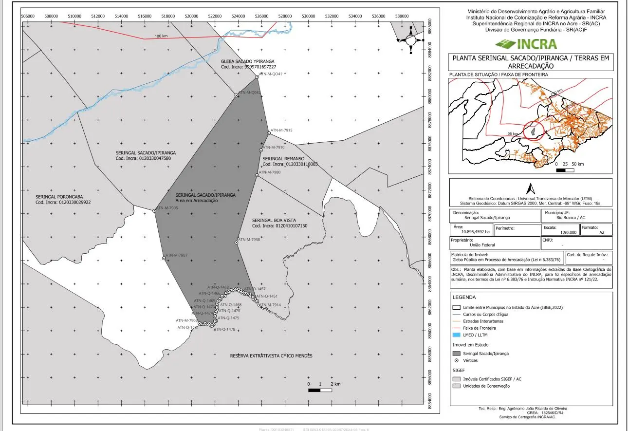 Mapa georreferenciado da propriedade detalha a área de 33.044 hectares legalmente registrada/Foto: Reprodução