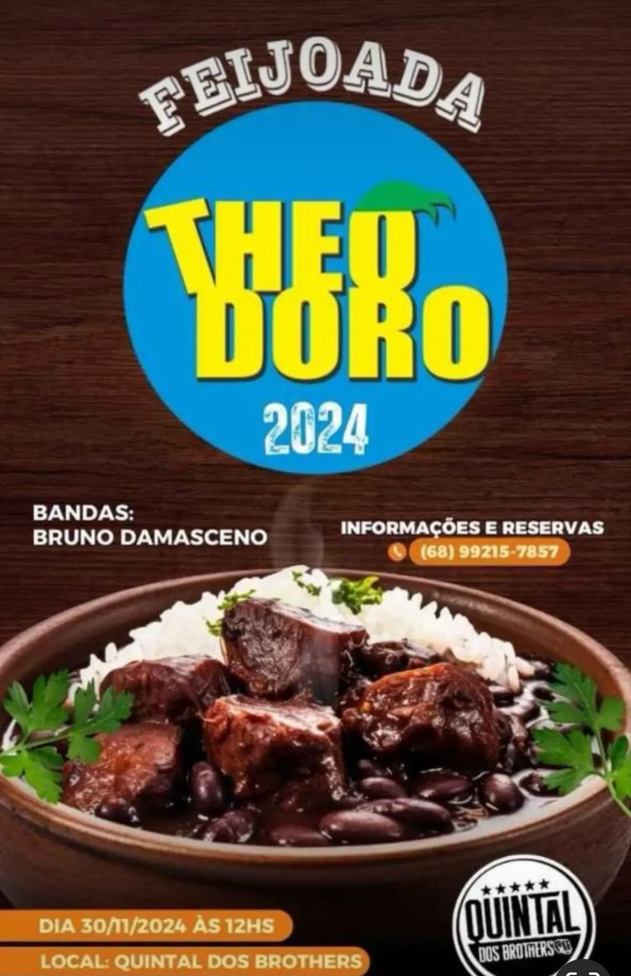 Já tem data! Será dia 30, no Quintal dos Brothers a Feijoada do Theodoro, evento que sempre é sucesso, reunindo personalidades da cidade em um clima descontraído e cheio de sabor. A tradicional feijoada contará com boa música, convidados especiais e aquele astral que só o colunista sabe proporcionar.