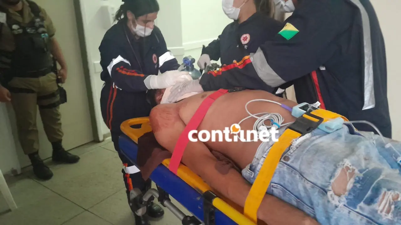 A vítima precisou ser entubada e apresentou um traumatismo craniano encefálico (TCE) de natureza grave, além de um trauma torácico.
