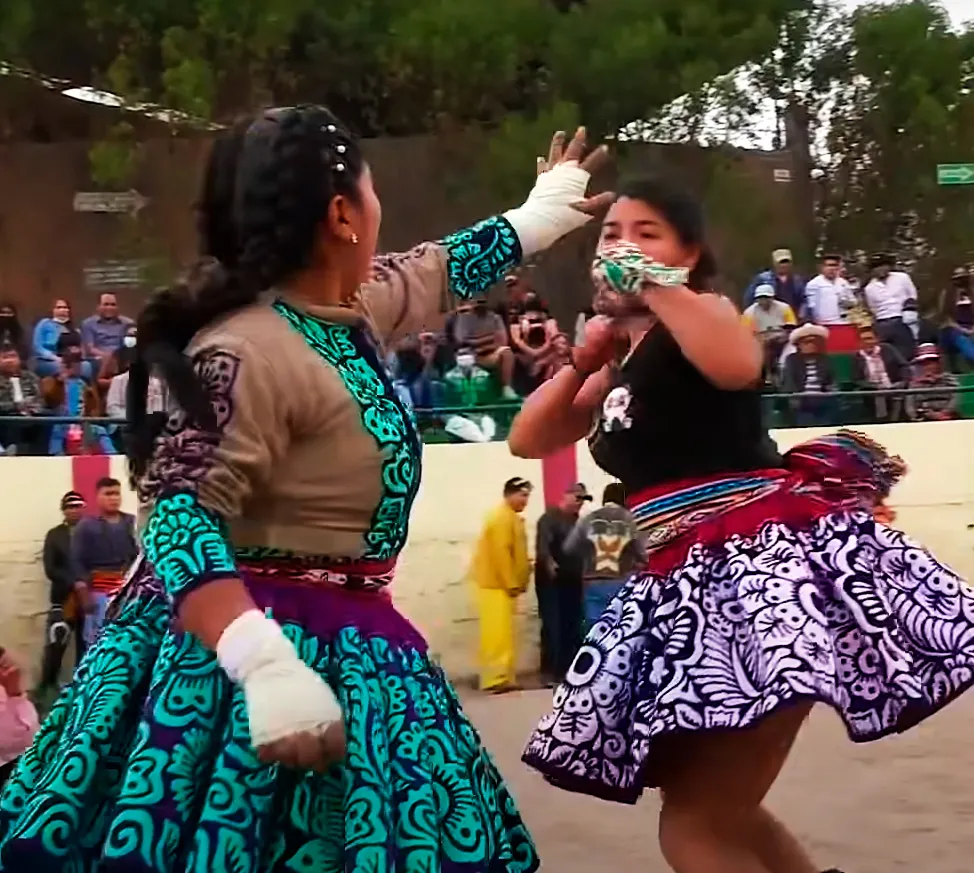 Essa tradição, que inclui tanto homens quanto mulheres, remonta ao período colonial. Na época, conquistadores espanhóis organizavam lutas entre seus vassalos no Natal, semelhante a brigas de galos. Após a independência, o costume se fundiu com o Huaylía, manifestação cultural que mescla música, dança e celebrações indígenas, dando origem à prática atual.