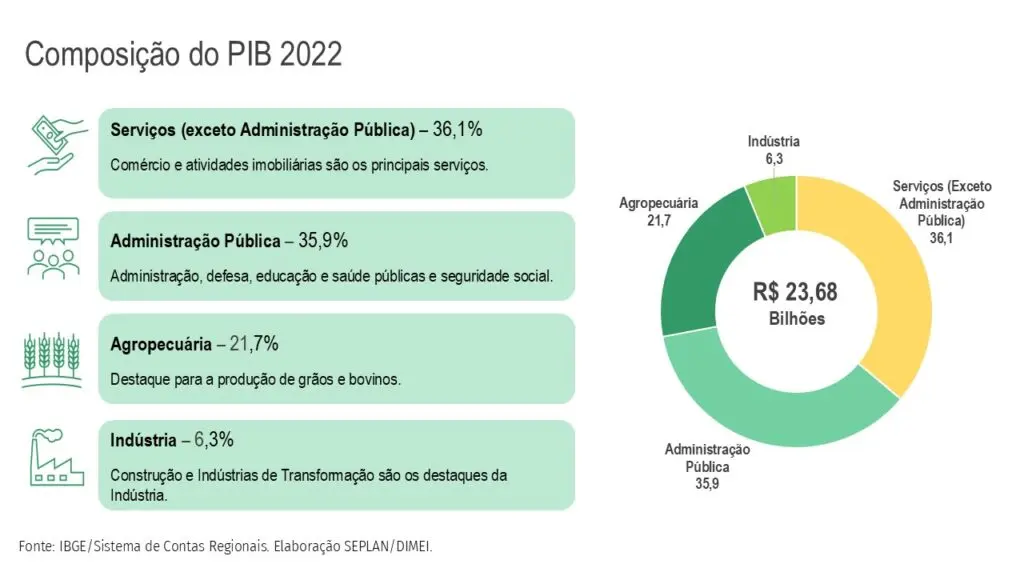 De acordo com o indicador, o avanço representou o quinto maior aumento real do PIB entre os estados brasileiros, sendo duas vezes o crescimento do Brasil (3%) e três vezes o da Região Norte (2%). No PIB per capita, o estado saiu de R$ 23.569 em 2021 para R$ 28.525 em 2022.