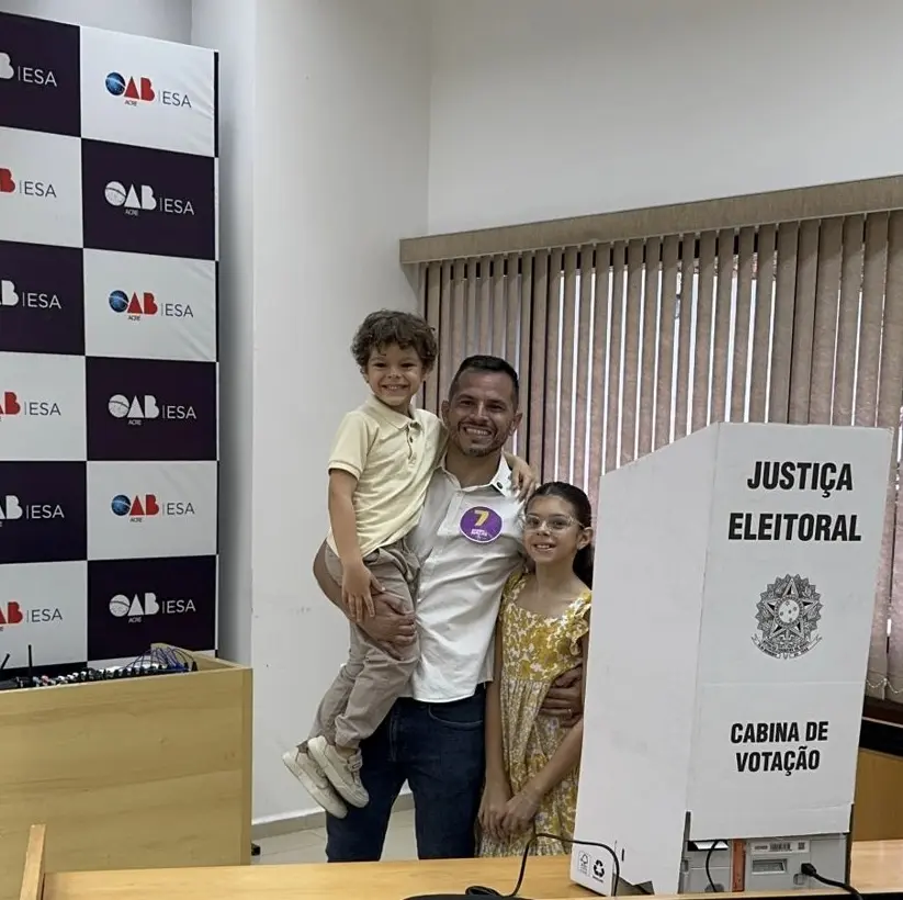 Rodrigo Aiache vota acompanhado dos filhos na OAB. Foto: Reprodução