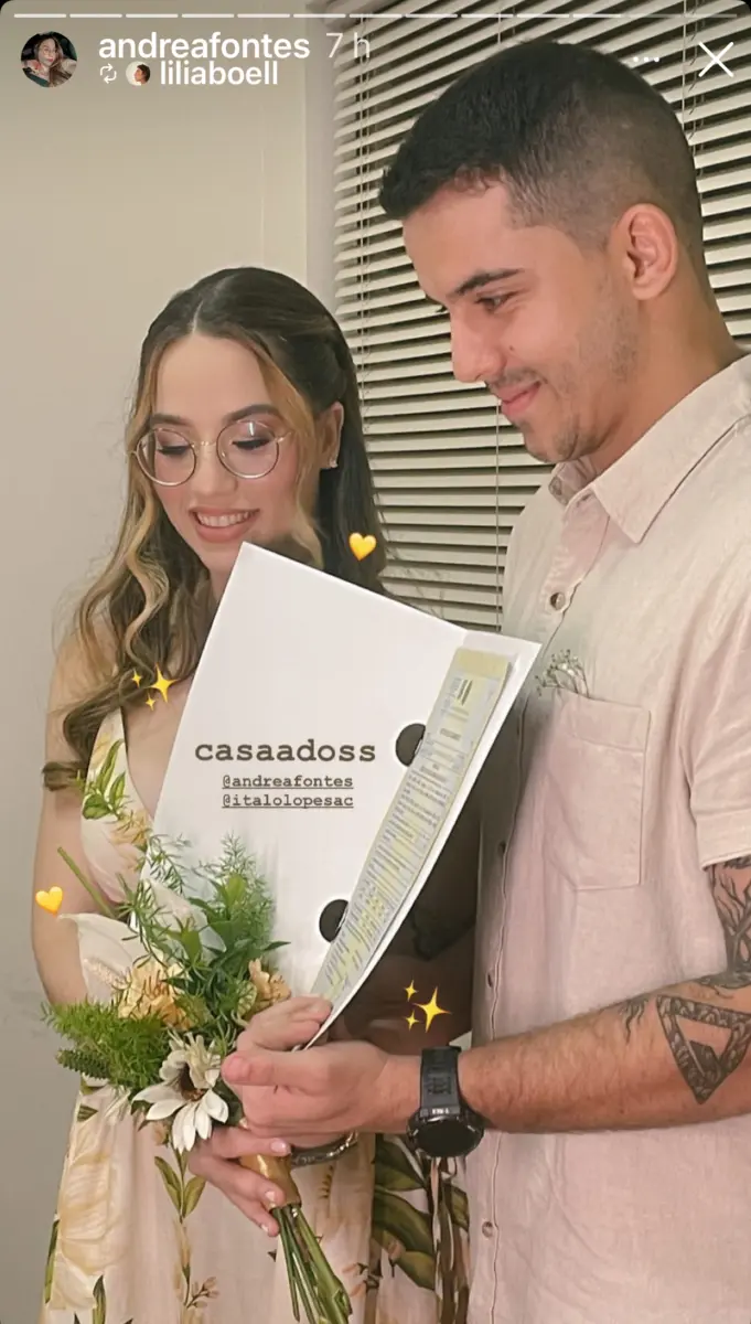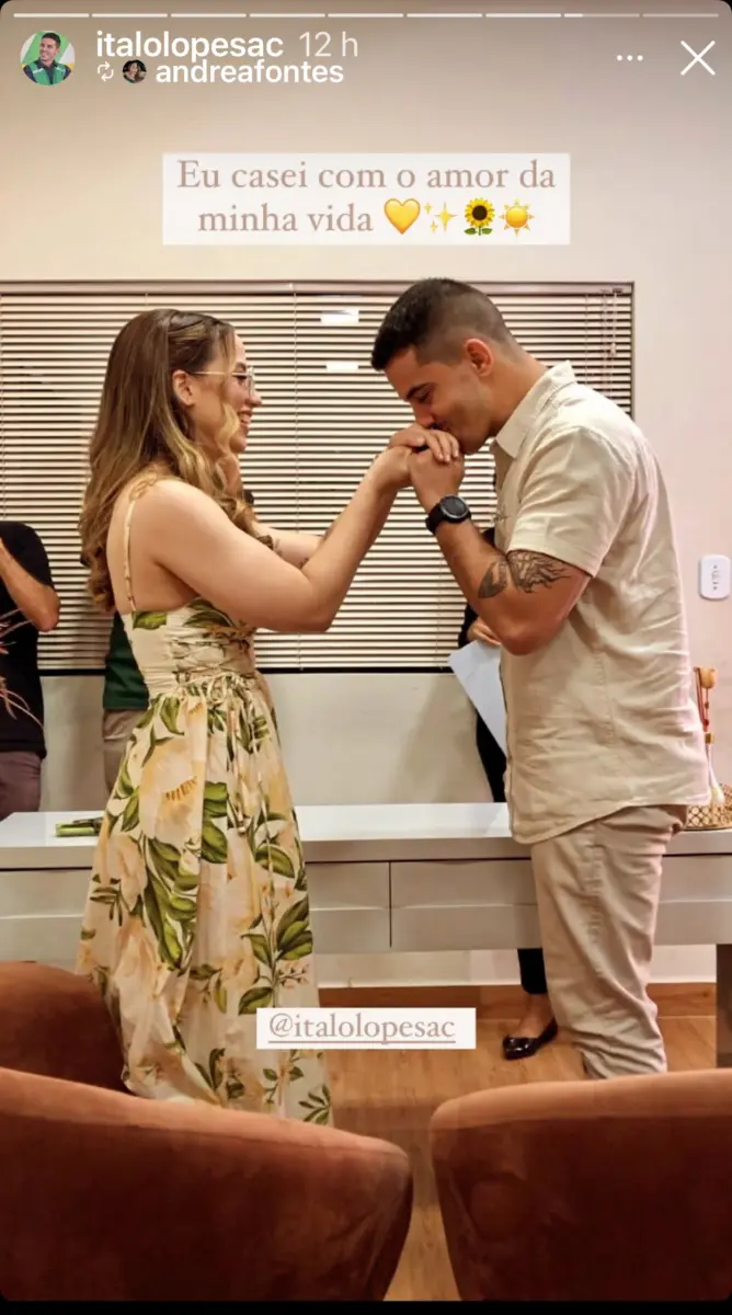 Ítalo Lopes e Andréa Fontes celebraram o casamento nesta sexta-feira (22) em cartório de Rio Branco; declarações de amor marcaram o momento.