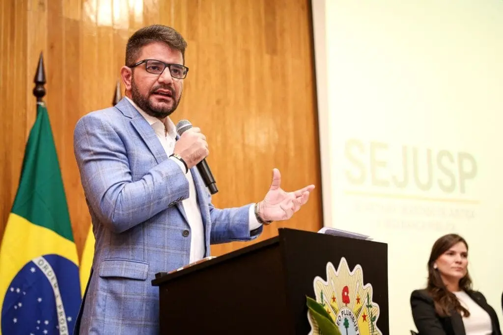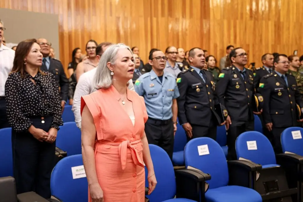 Além de autoridades locais, com a presença do governador Gladson Cameli, o evento contou com a participação da diretora de gestão do Fundo Nacional de Segurança Pública (FNSP), Camila Pintarelli.