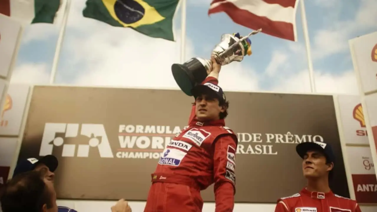 Figuras importantes dos bastidores da Fórmula 1 também marcam presença. Para contar a história, a produção também recorre a personagens ficcionais, como Laura Harrison (Kaya Scodelario), inspirada em jornalistas que acompanharam a carreira de Senna.