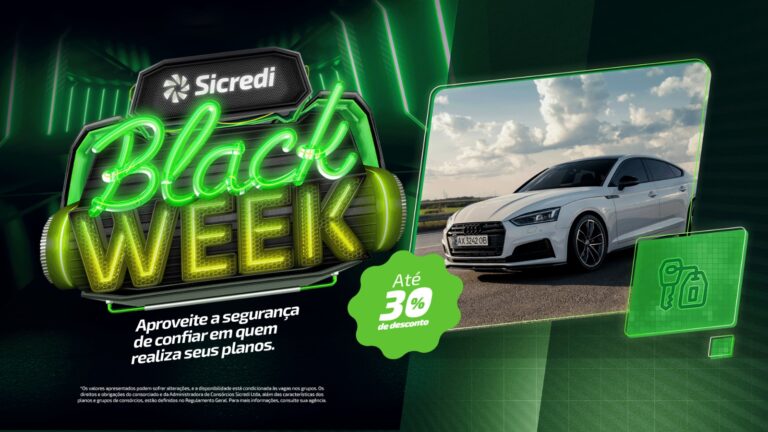 Lançando a Black Week, o Sicredi dá início a uma campanha especial que acontecerá entre os dias 12 à 16 de novembro, trazendo condições imperdíveis e exclusivas para consórcios. Esta iniciativa é voltada para quem deseja adquirir bens de forma planejada e econômica, incentivando, assim, o consumo consciente e reforçando o compromisso do Sicredi com o planejamento financeiro de seus associados.Sicredi realiza “Black Week” e oferece condições exclusivas