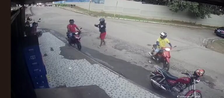Segundo as imagens, os criminosos chegam em uma moto e atiram contra a vĂtima que esperando sua vez de ser atendido no estabelecimento. Ainda de acordo com as informaçÔes, um dos atendentes do local acabou sendo atingido pelos disparos.