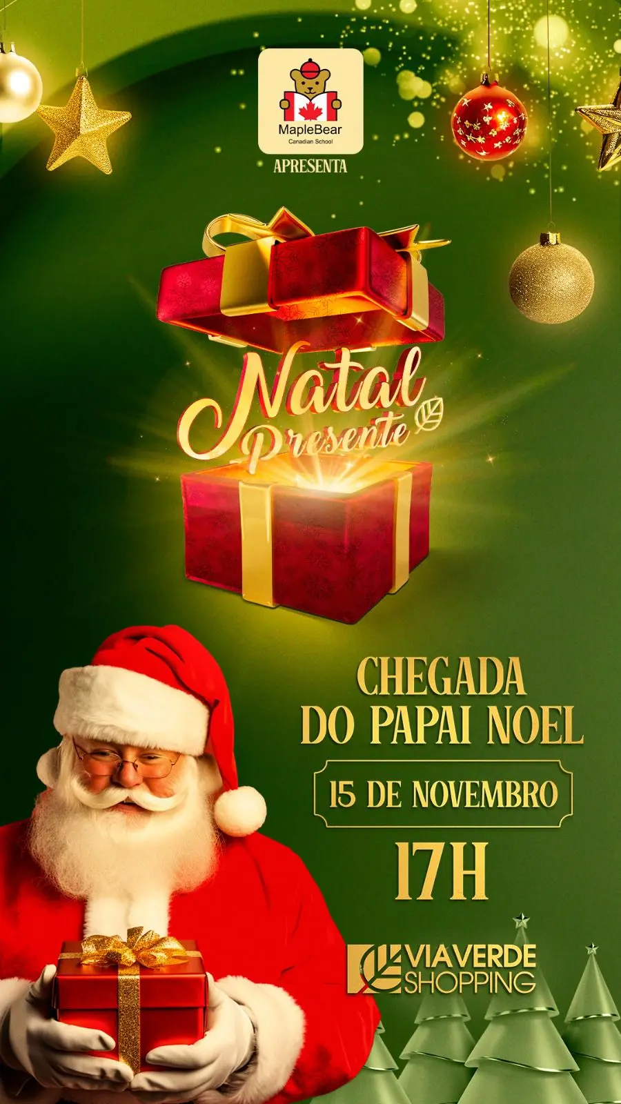 Prepare-se para uma noite repleta de encantamento, alegria e espírito natalino no Via Verde Shopping. A chegada do Papai Noel, marcada para o dia 15 de novembro às 17h, iniciando oficialmente a época mais mágica do ano com um espetáculo repleto de magia, música e surpresas para toda a família.