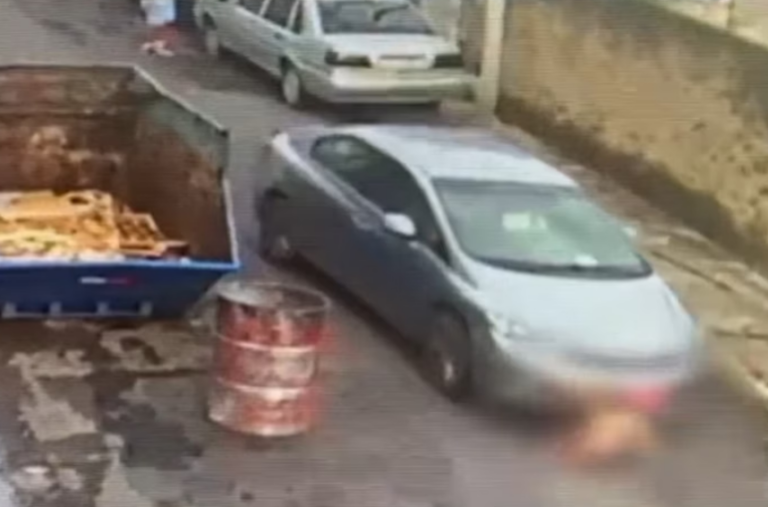 O registro mostra que uma testemunha tenta alertar o motorista sobre a presença de uma criança ali, mas sem sucesso.