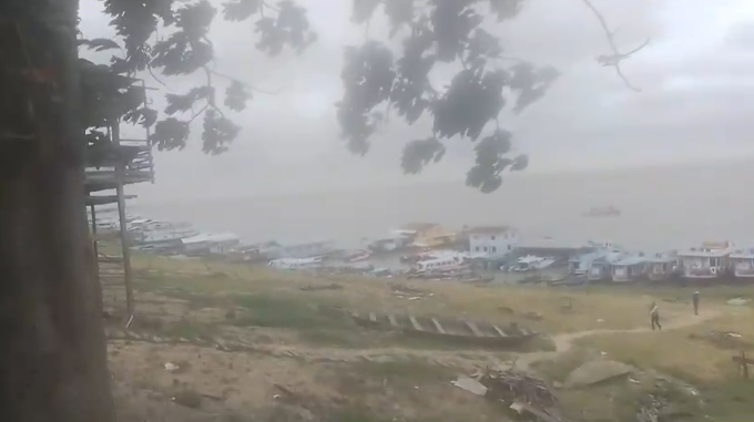 Moradores do município de Manacapuru registraram, nesta quarta-feira (6), o momento em que ventos fortes provocaram uma tempestade de areia na cidade.