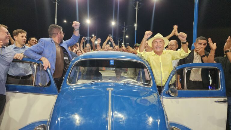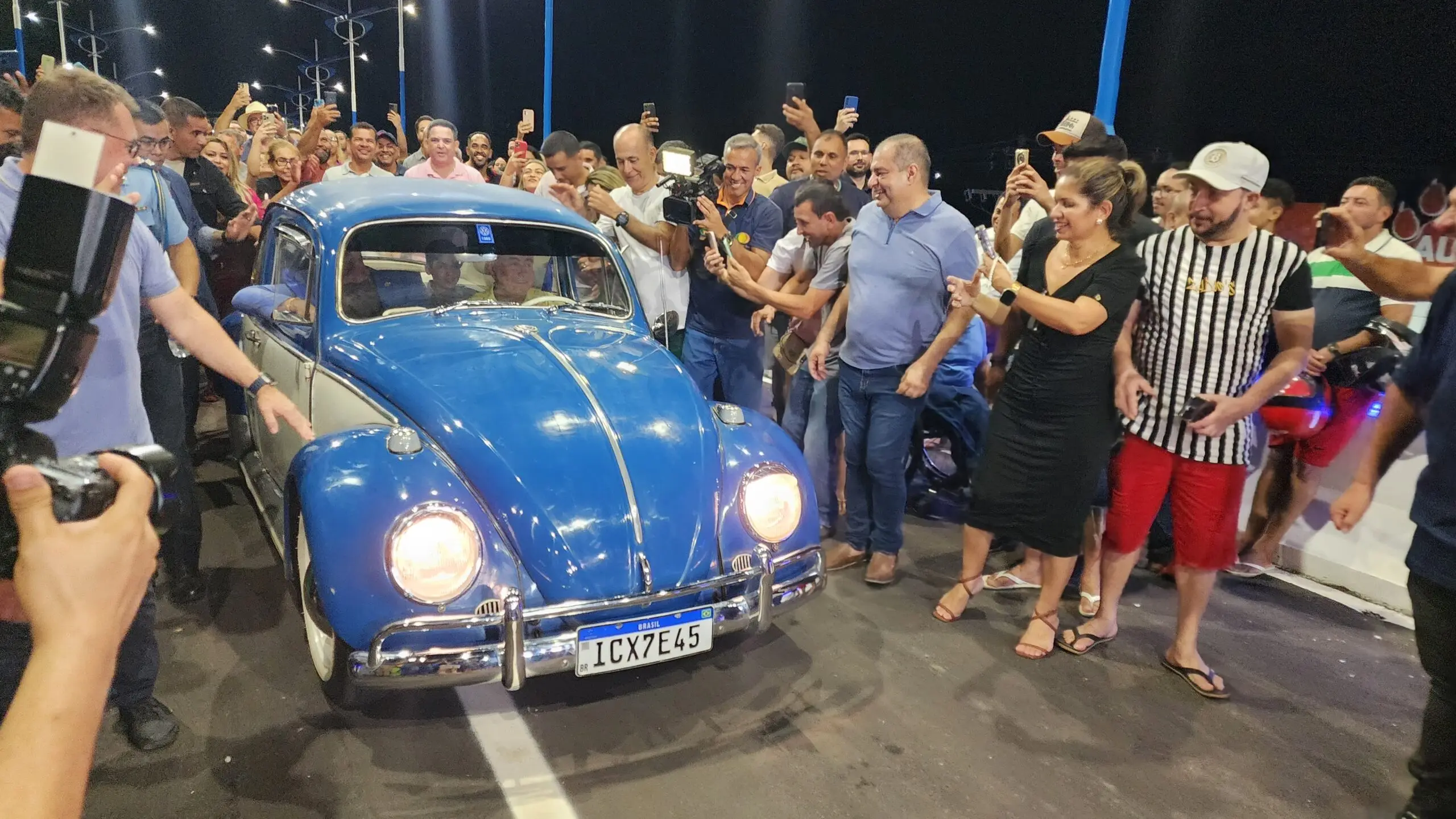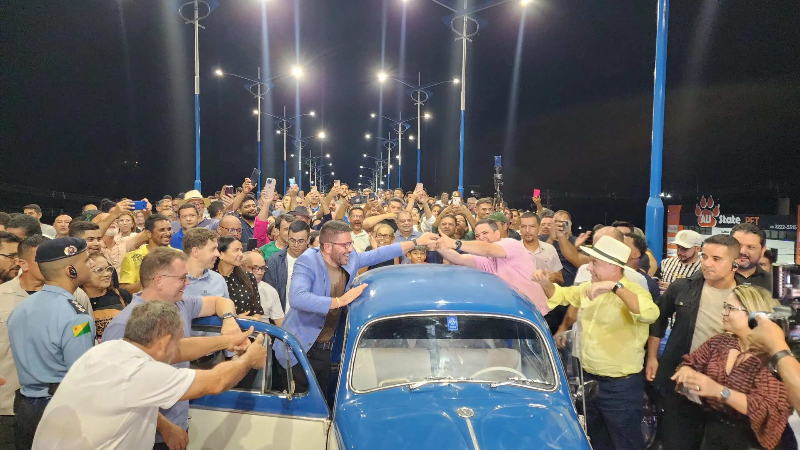 A cerimônia contou com a presença do governador Gladson Cameli e do prefeito Tião Bocalom, que realizaram a travessia inaugural a bordo de um Fusca azul.