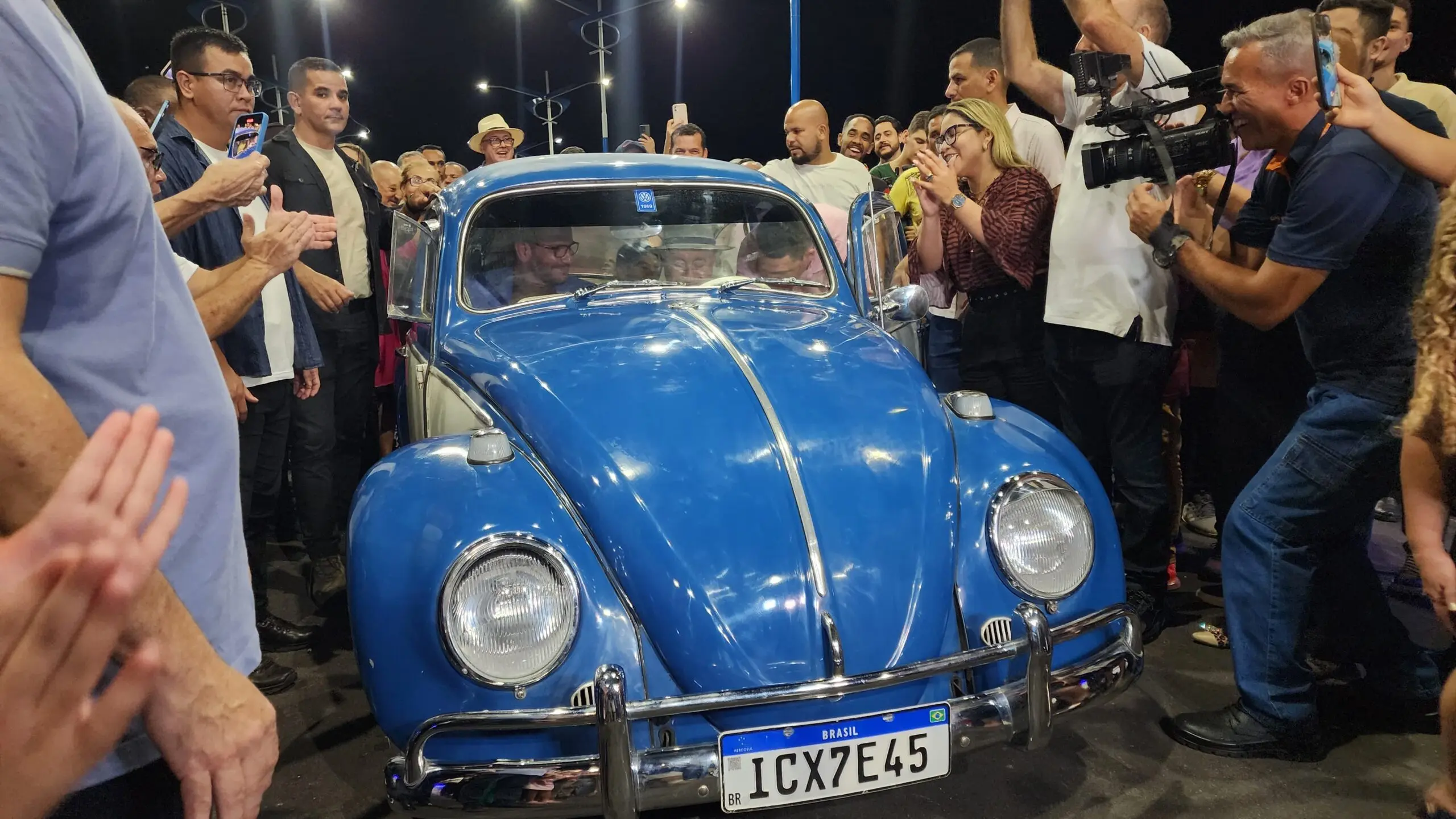 A bordo de fusca 69, Bocalom e Gladson fazem travessia inaugural do Elevado da Dias Martins