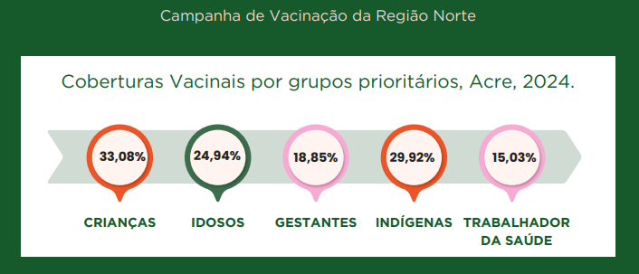 Os números apresentados no boletim não são tão positivos. No geral, o Acre só conseguiu atingir pouco mais de 17% da cobertura vacinal no ano.