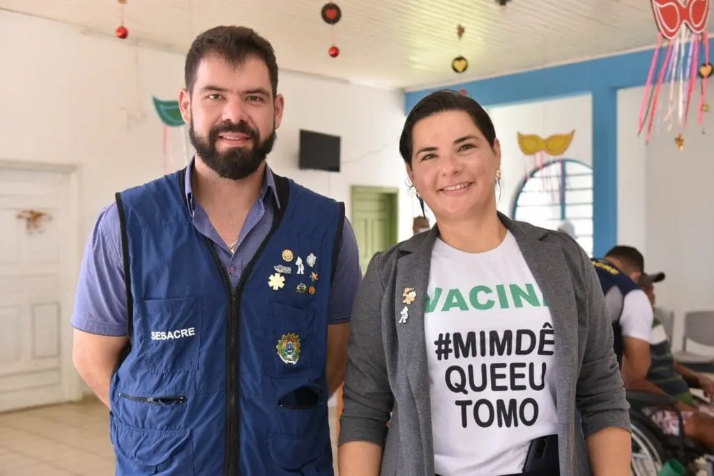 Secretário de Saúde, Pedro Pascoal e coordenadora do Programa Nacional de Imunização (PNI) no Acre, Renata Quiles. Foto: Júnior Aguiar/Sesacre