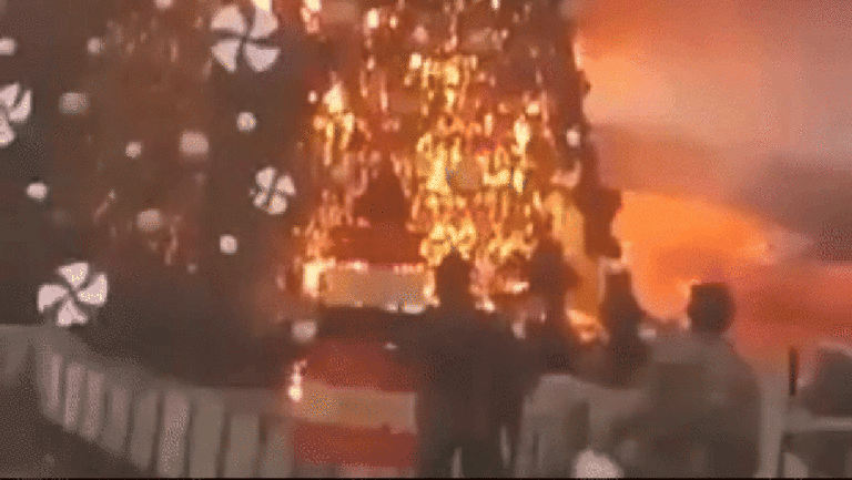 Árvore de Natal é incendiada, e centenas cristãos protestam na capital da Síria; veja vídeo
