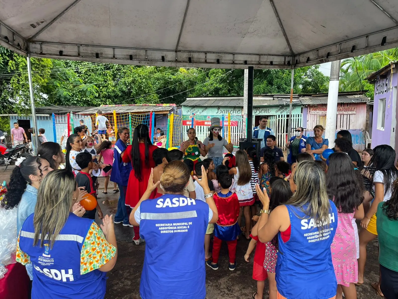 A tarde de segunda-feira (23) foi marcada por sorrisos e emoção na comunidade Dom Giocondo, em Rio Branco. Uma ação solidária de Natal, promovida pela Prefeitura por meio da Secretaria de Assistência Social e Direitos Humanos (SASDH), transformou o dia de dezenas de famílias, levando mais do que presentes: momentos de afeto, cuidado e inclusão.