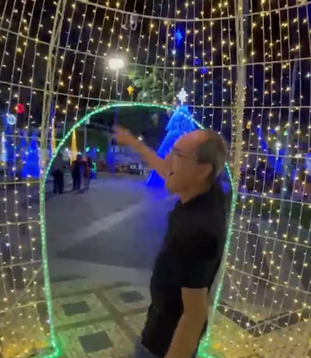 A magia do Natal tomou conta da Praça da Revolução, em Rio Branco, na noite desta segunda-feira (9), mas quem brilhou mesmo foi Ayres Rocha, jornalista aposentado e renomado na capital, que dançou ao som de música de discoteca em meio à decoração temática.