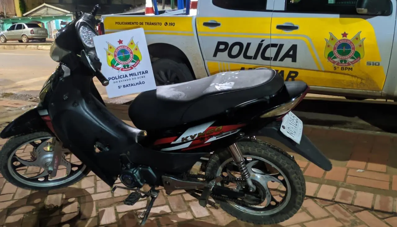 Uma operação de trânsito realizada na Rua do Areial, no bairro Marcos Galvão II, em Brasiléia, na noite desta terça-feira (24), resultou na apreensão de uma motocicleta de origem boliviana com restrição de roubo e placa adulterada.