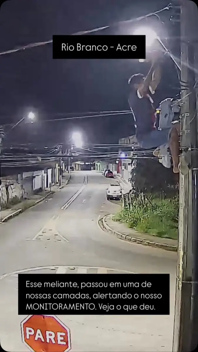 Uma câmera de segurança flagrou o momento em que um homem sobe em um poste e tenta roubar a fiação pública em Rio Branco, capital do Acre. O vídeo foi divulgado nas redes sociais da empresa responsável por fazer a gestão do aparelho que filmou o ocorrido.