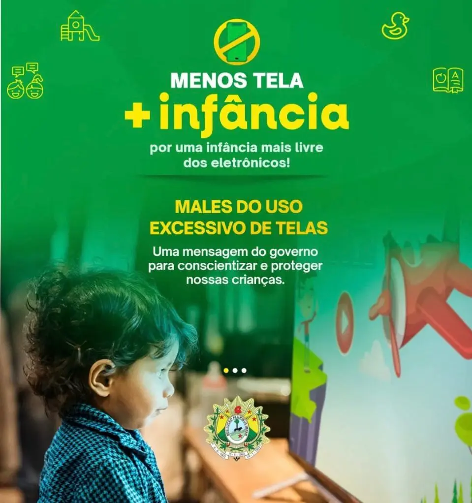 O governo do Acre lançou nesta segunda feira (9) a campanha ‘Menos Tela, + infância’, que busca a conscientização sobre os perigos do uso excessivo de telas por crianças. De acordo com a divulgação, o hábito pode prejudicar o desenvolvimento dos pequenos, causando problemas de sono , concentração e saúde mental.