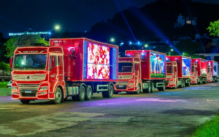Caminhões iluminados da Caravana de Natal da Coca-Cola percorreram as ruas de Rio Branco, espalhando magia e alegria natalina/Foto: Reprodução
