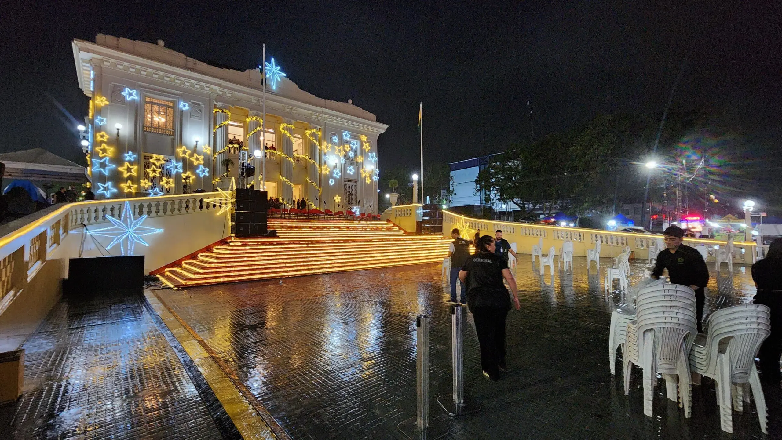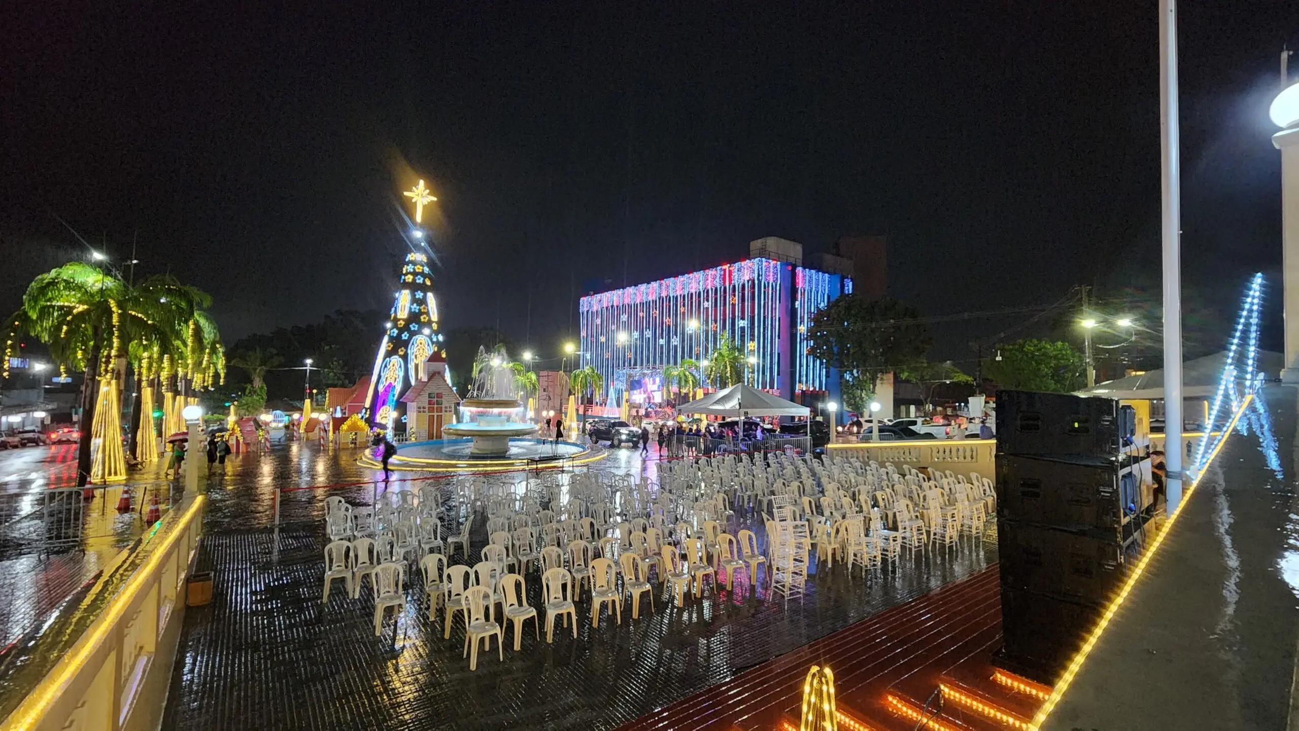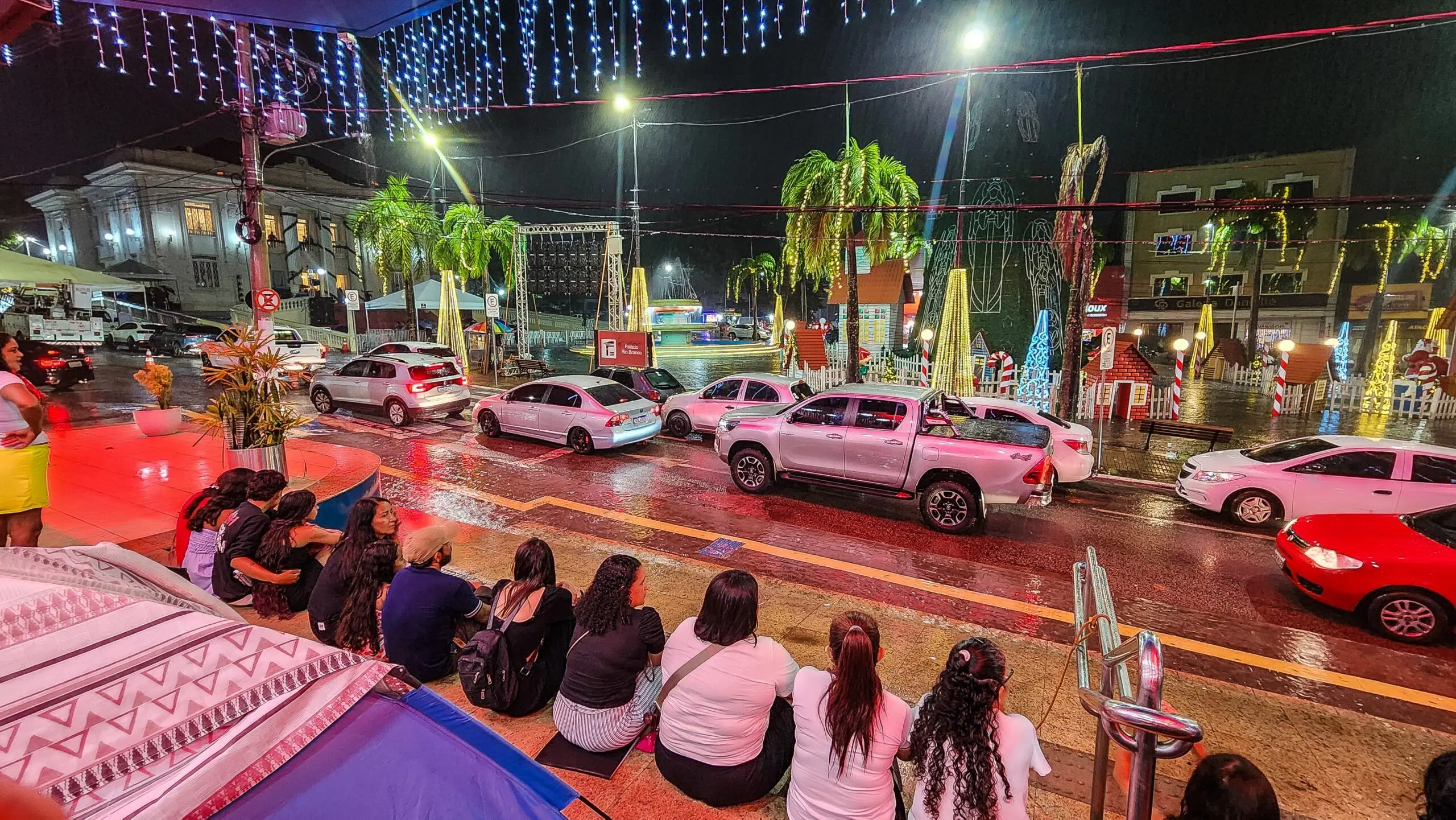 Mesmo com a chuva, o evento reuniu público para assistir o acender das luzes natalinas em frente ao Palácio Rio Branco. Na decoração deste ano, ao público poderá ver uma árvore de Natal gigante e a tradicional Casinha do Papel Noel.
