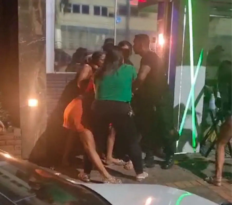 O momento da briga generalizada foi registrado por populares que estavam no local. A confusão precisou da intervenção de um segurança da casa noturna para ser encerrada.